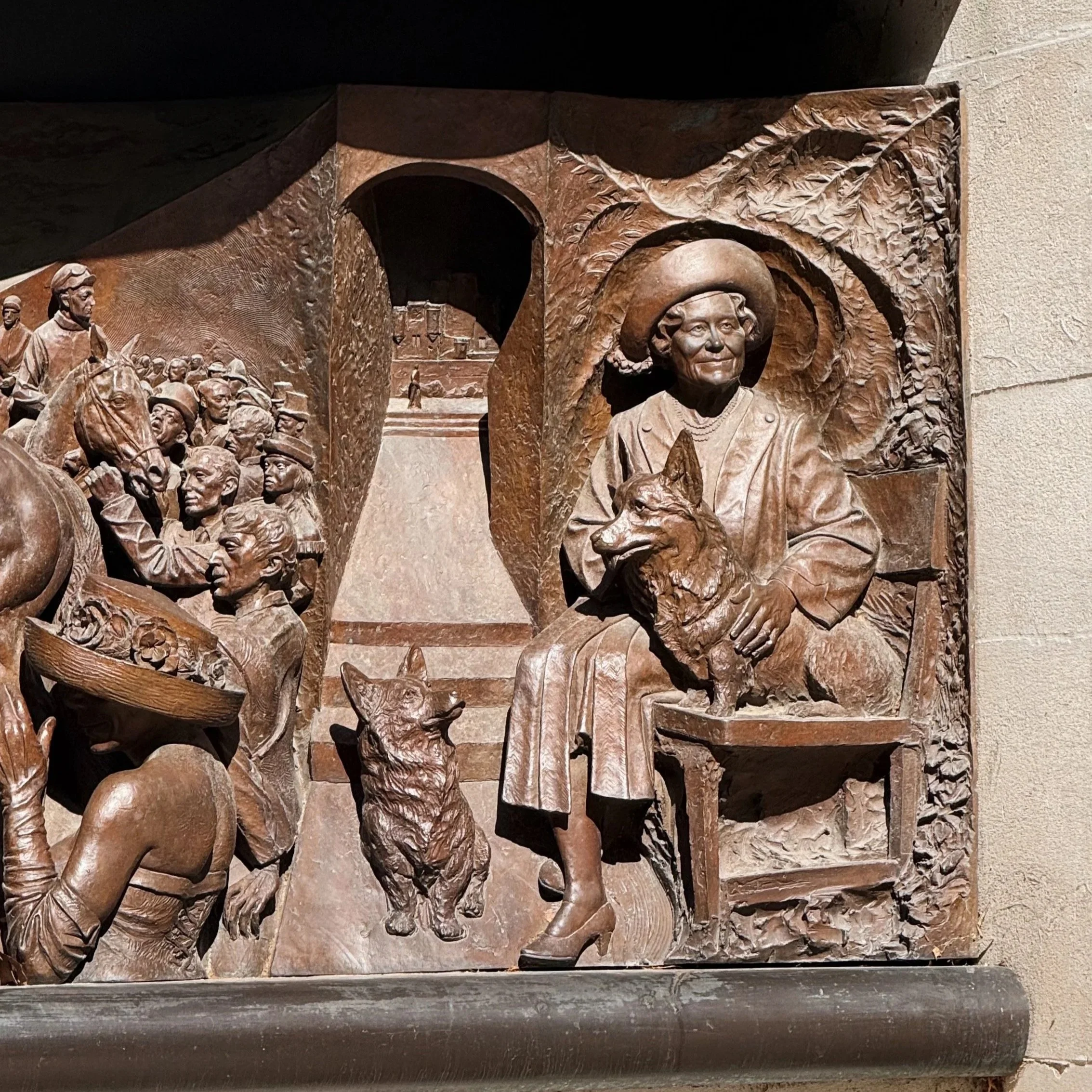 Queen Elizabeth and her corgis, part of the King George VI & Queen Elizabeth memorials along The Mall